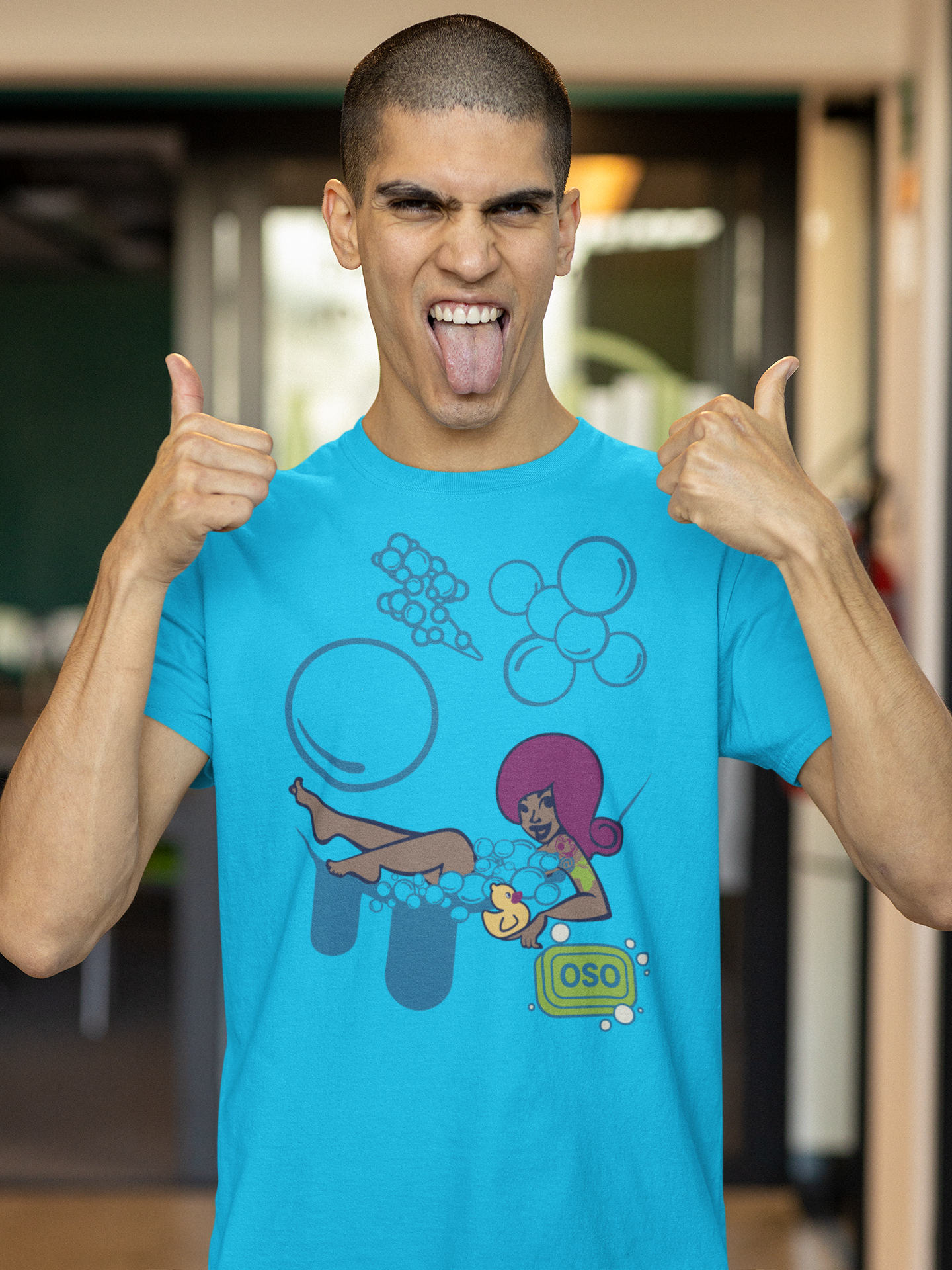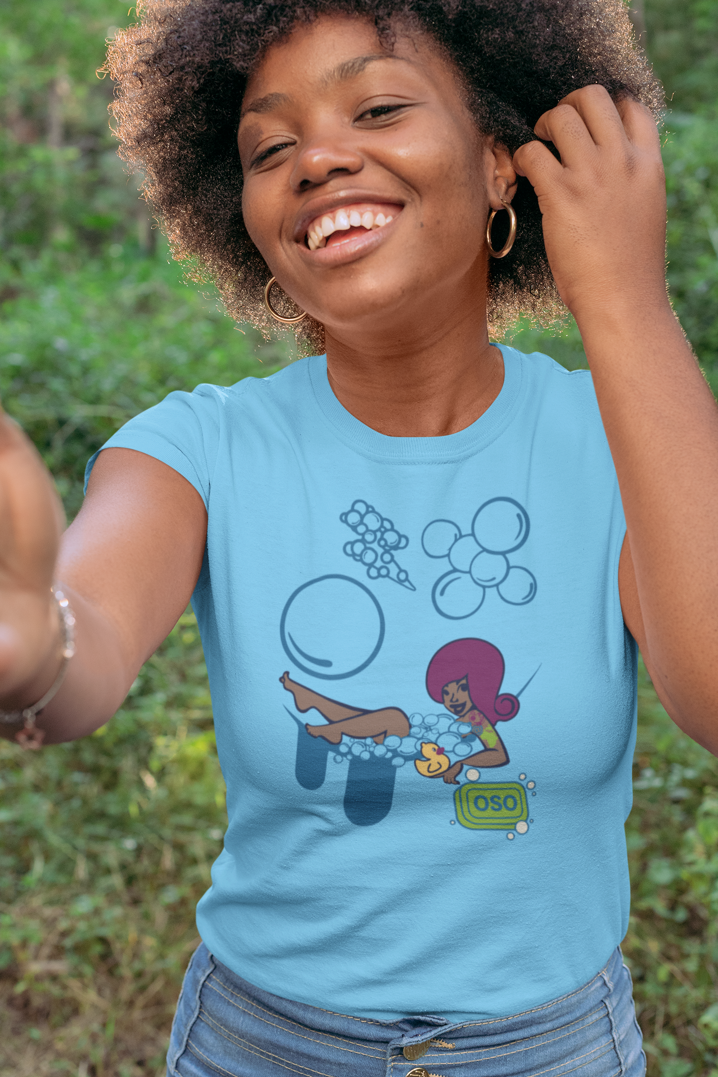 This is freshness with personality. Our Sabroso muse kicks back in the tub, bubble-crowned and unbothered — a whole “clean clean” mood.